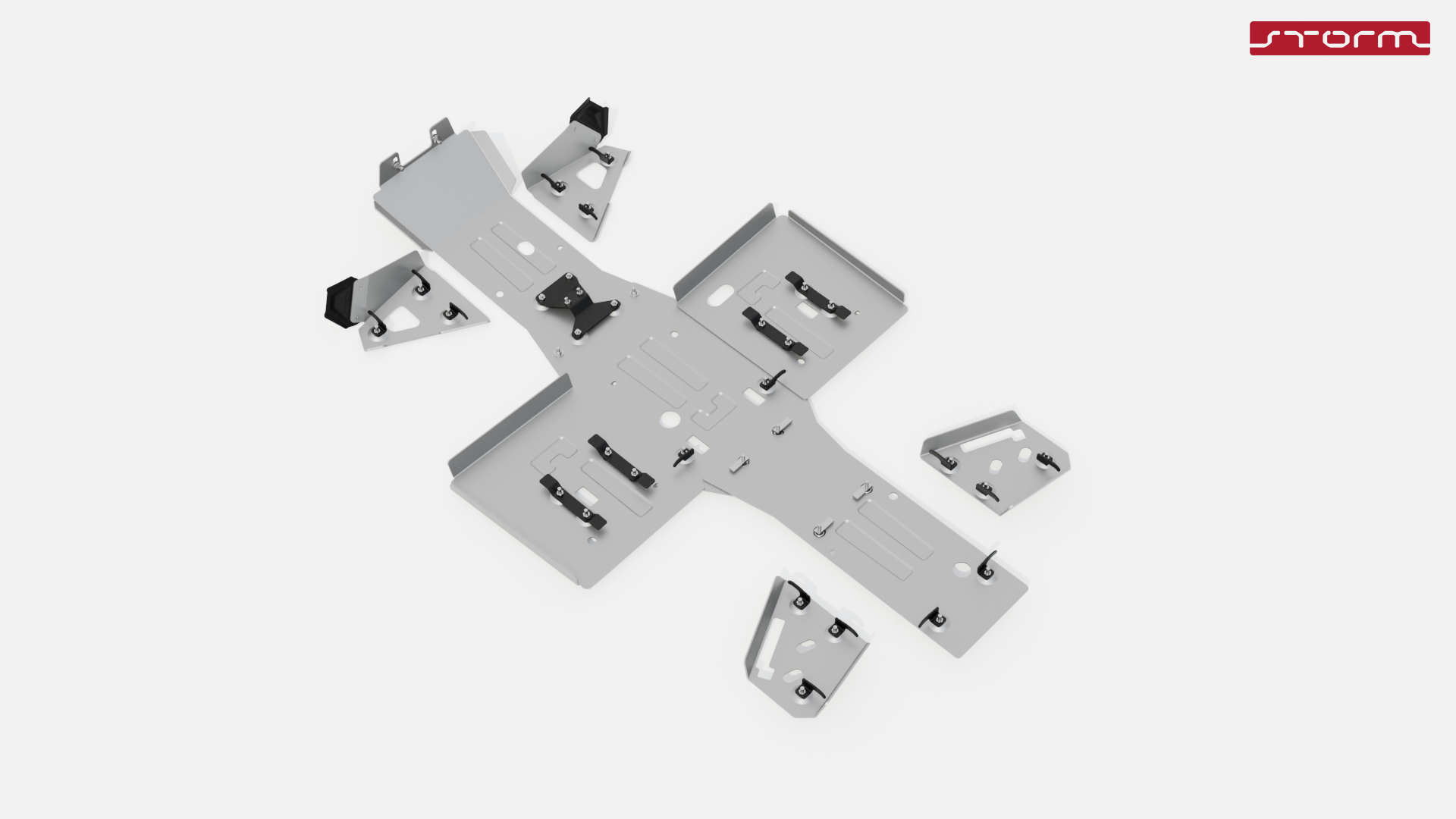 Защита из легкого и прочного алюминиевого сплава 4 мм надежно сохранит раму и другие детали квадроцикла. Дополнительные штампованные ребра жесткости усиливают защиту днища, и в сочетании с обнижениями в местах крепления позволяют легко скользить по препятствиям. Пластиковые лепестки защищают пыльники ШРУСов. Гальваническое покрытие крепежа защиты обеспечивает надежную фиксацию в любых условиях.