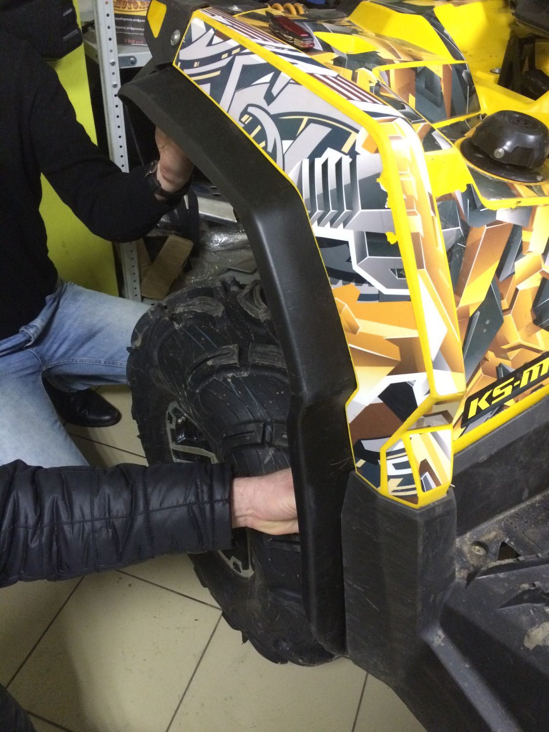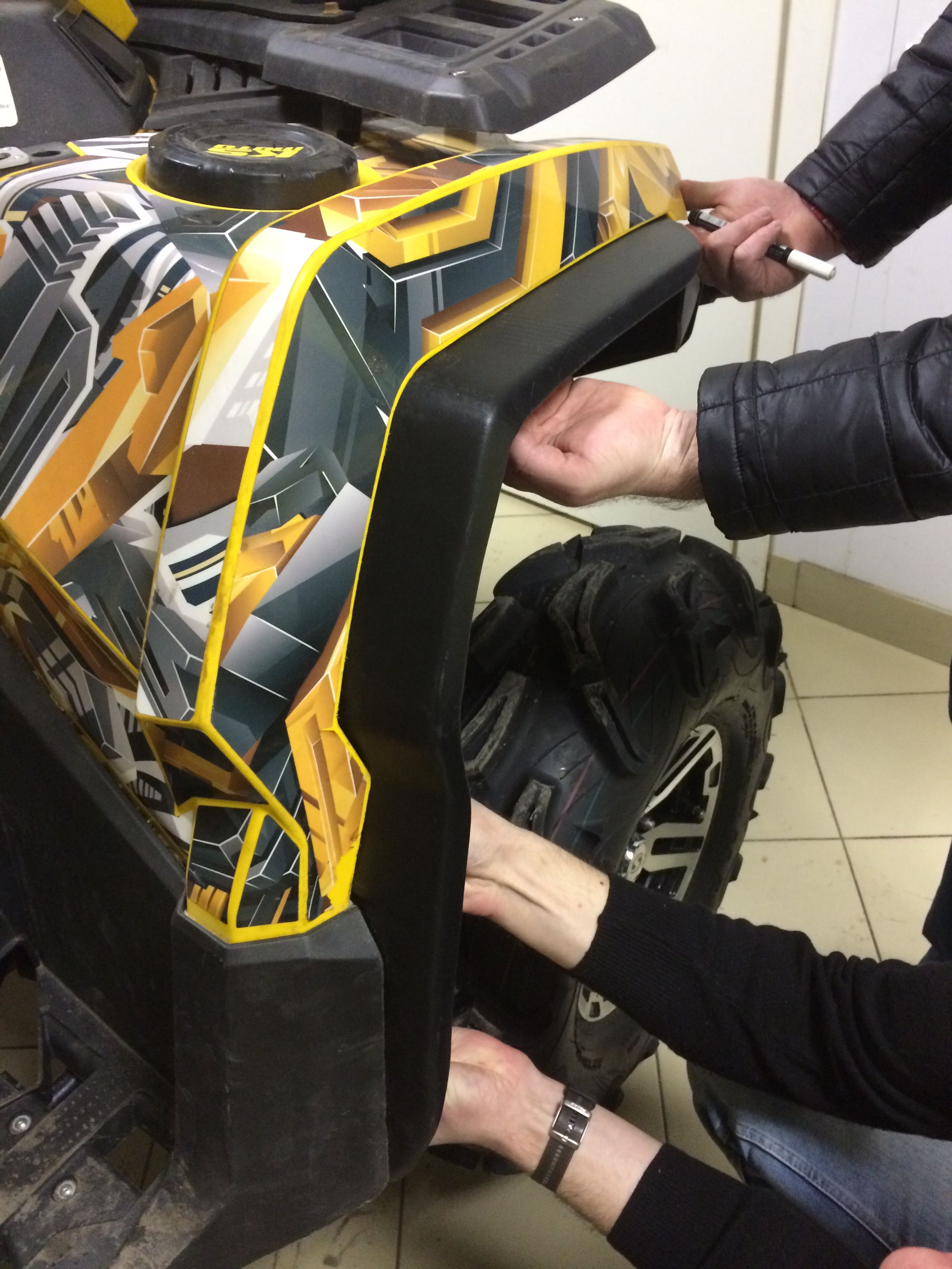 Расширители арок выполнены из гибкого, морозостойкого, устойчивого к ударам пластика. Крепятся на клипсы, сверление по месту, идеально повторяют арку квадроцикла.