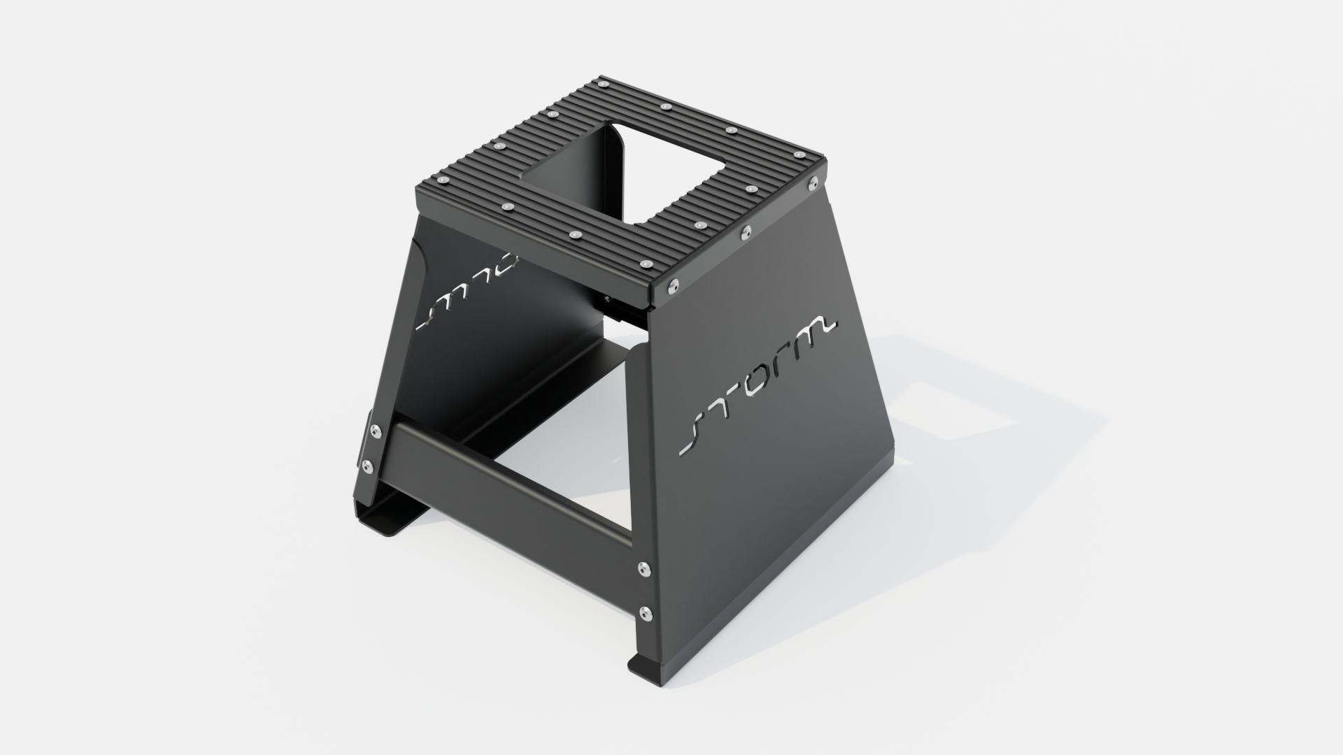 Подставка тумба для кроссового мотоцикла из алюминиевого сплава. Имеет черное порошковое покрытие. Верхняя часть тумбы имеет прорезиненное покрытие для защиты рамы мотоцикла от царапин.