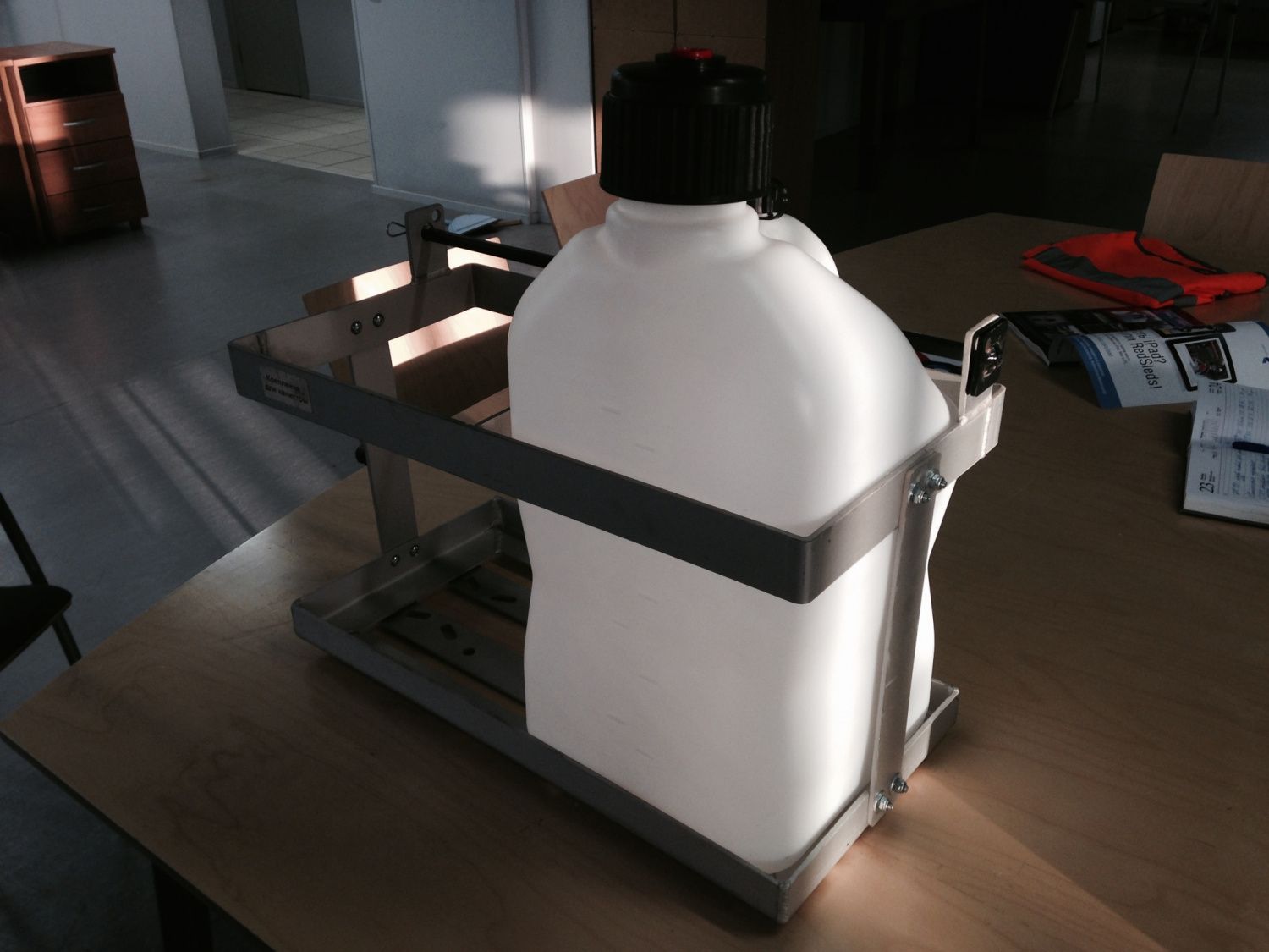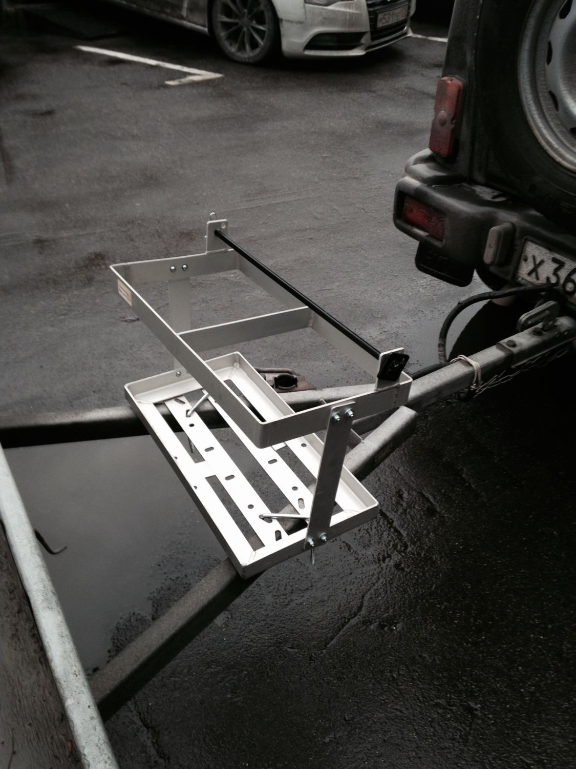Крепление предназначено для перевозки спортивных канистр (VP Racing, GKA Racing). Входящие в комплект поставки кронштейны позволяют закрепить держатель на дышле прицепа.