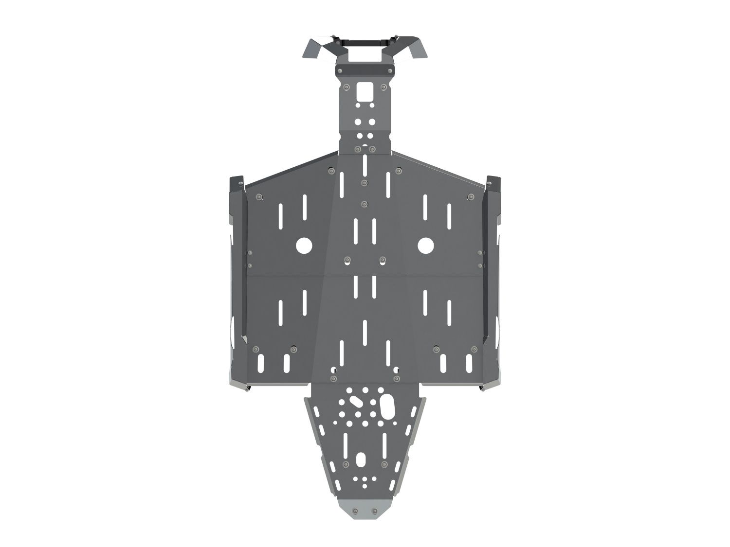 Защита днища закрывает полностью всю нижнюю часть мотовездехода от возможных повреждений. Защите порогов уделено отдельное внимание - пластик порогов надежно защищен от повреждений при преодалении препятствий.